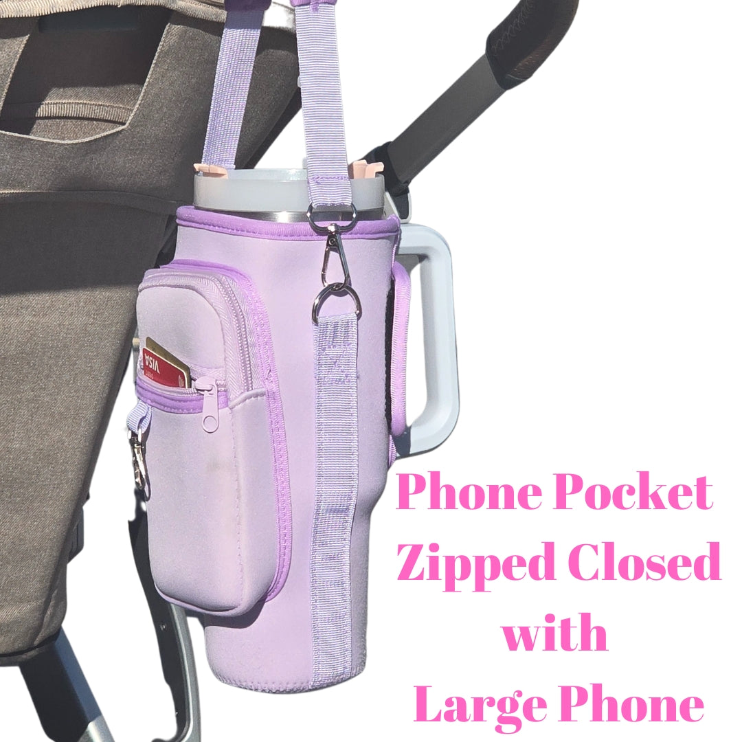 Stanley Cup Holder for Stroller- w/ Large Phone Pocket, Crossbody Strap & Wallet, Fits Most 30/40 Ounce Styles , Water Bottle Holder for Moms, Travelers & Active Lifestyles