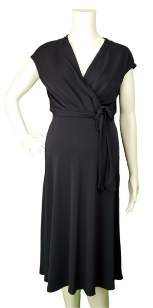H&M wrap top knit dress with tie belt. Only the top is wrap-style which allows for nursing access. Short, cap sleeves, v-neckline. Maternity friendly to wear through pregnancy & beyond the bump.